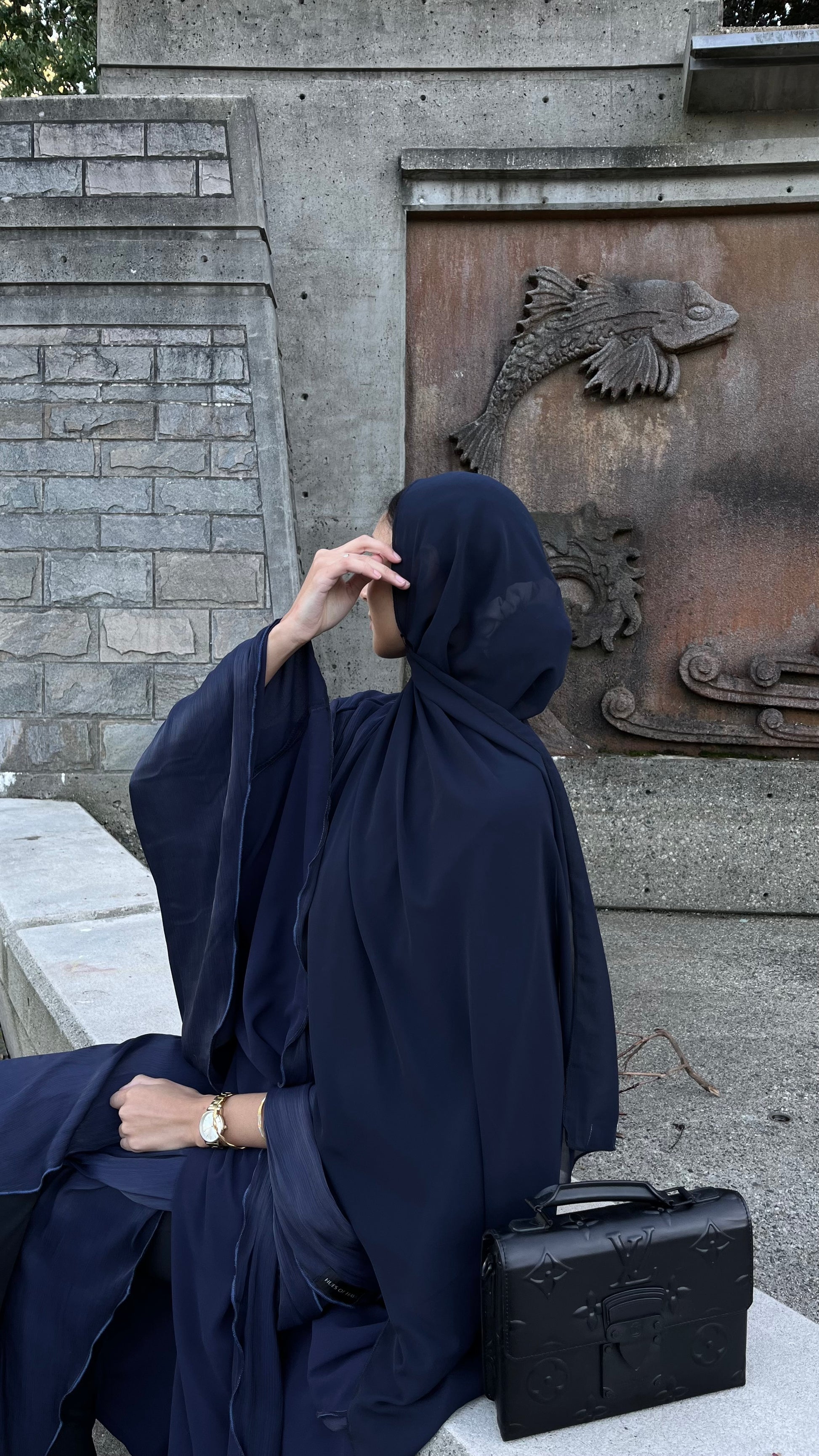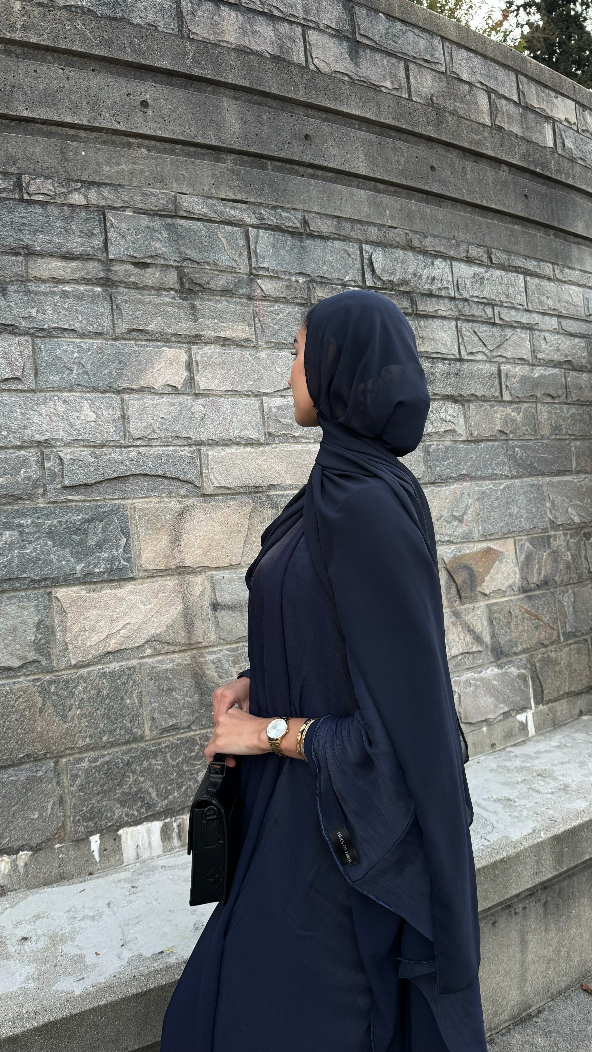 The Luxe Edit Collection brings you our more refined sets of the season. Drape yourself in our three-piece set including an outer abaya, an inner sleeveless dress, and a sheila. Our shimmery DellaBella Organza fabric will leave you in awe with every graceful step.