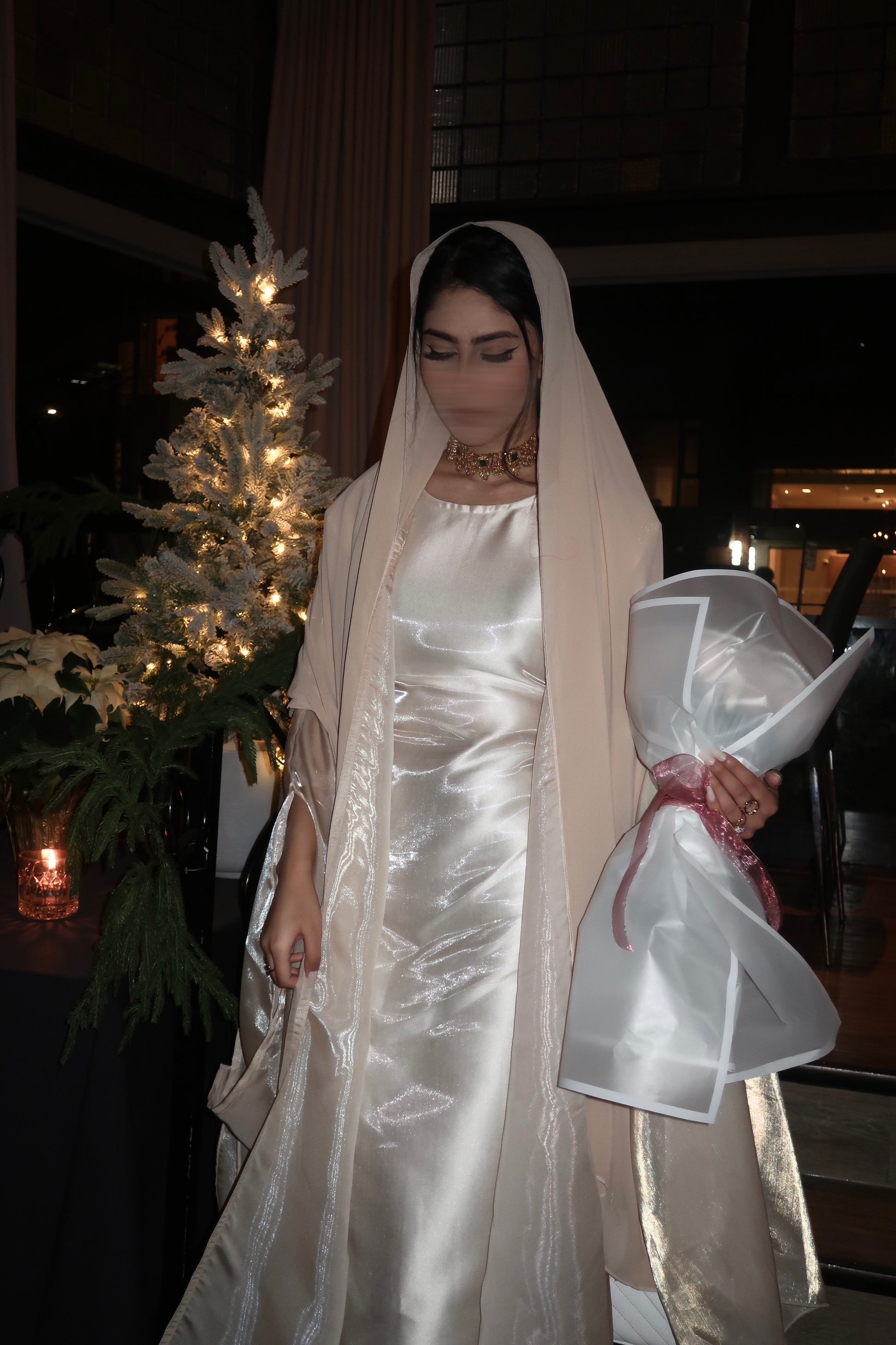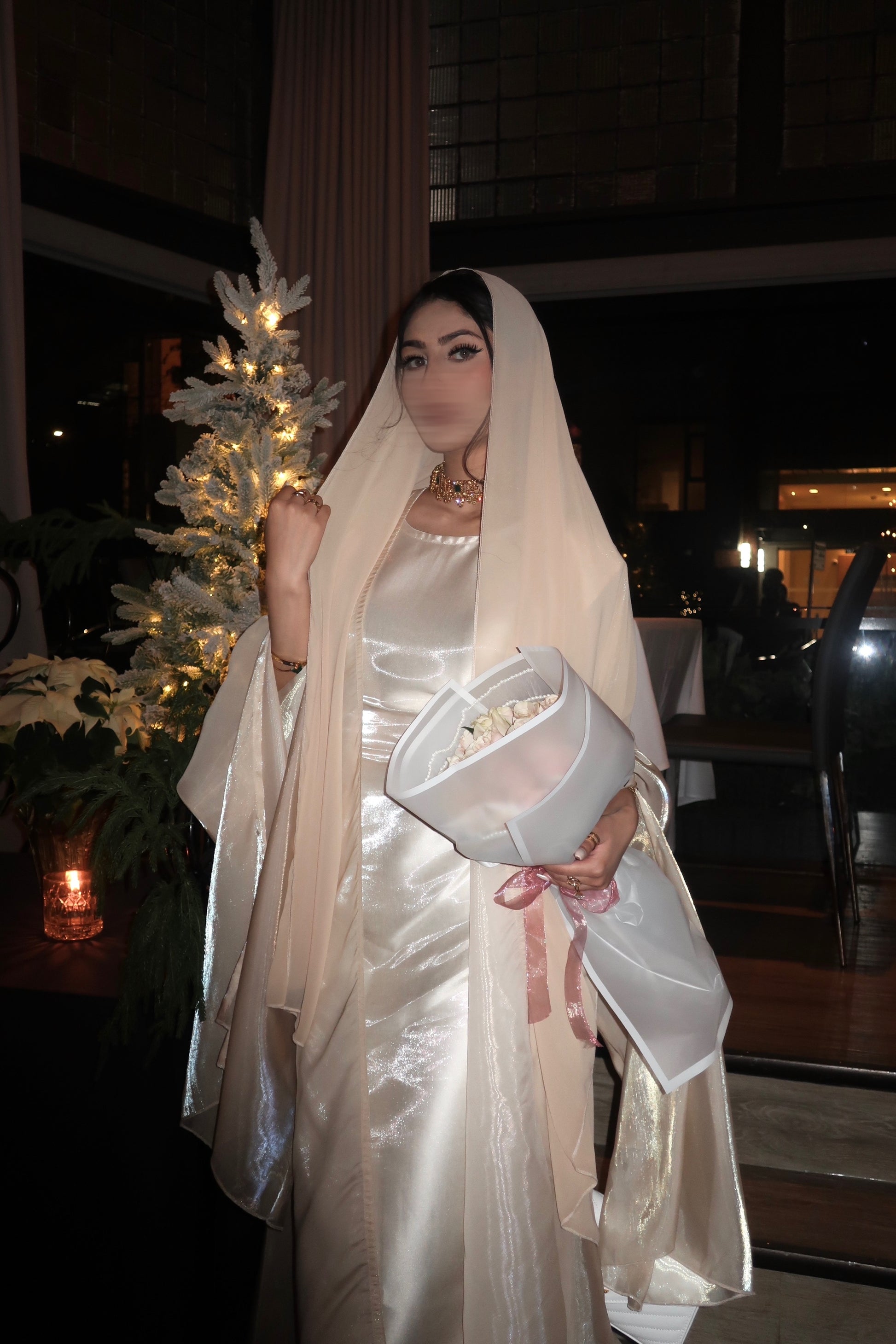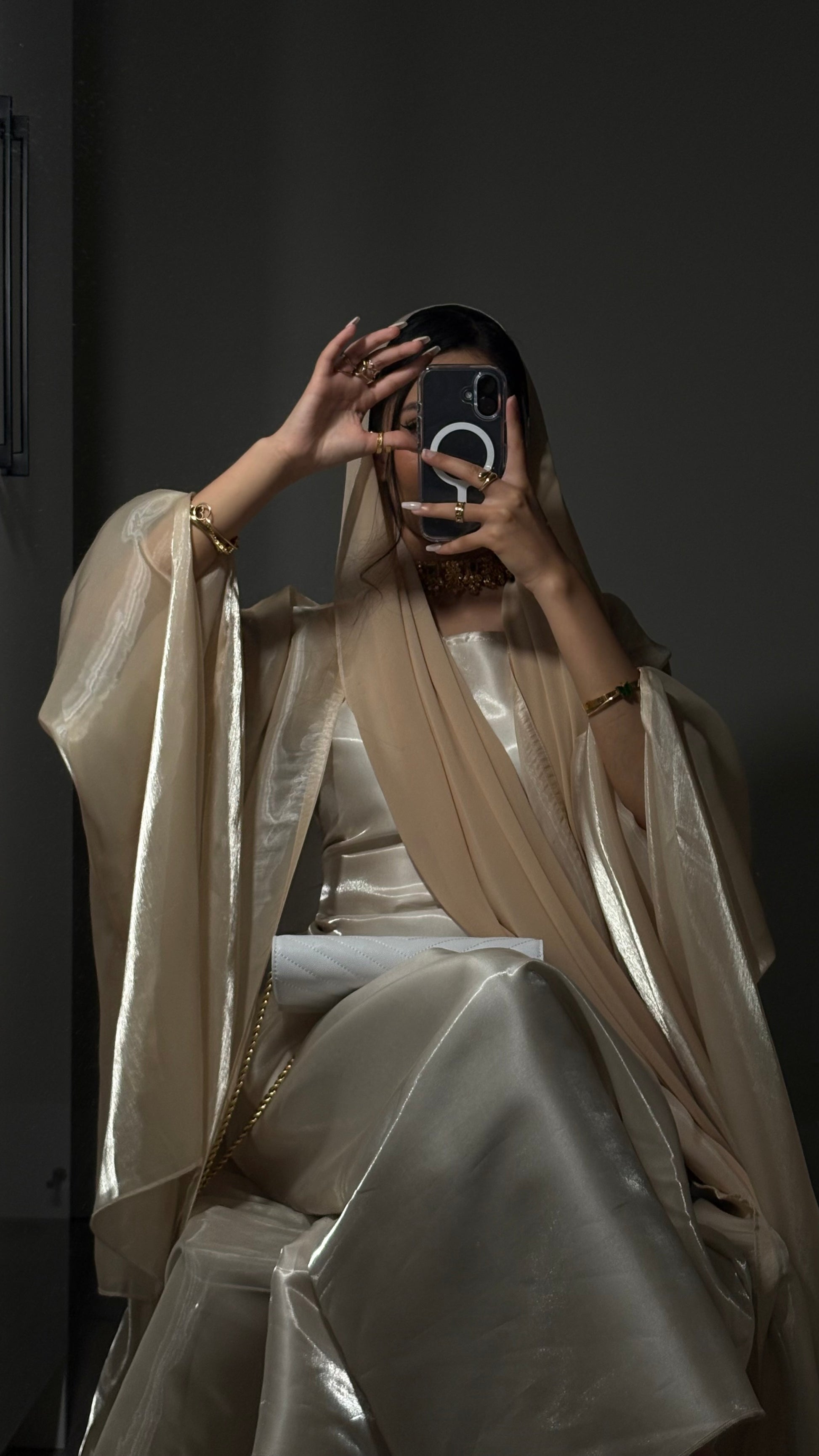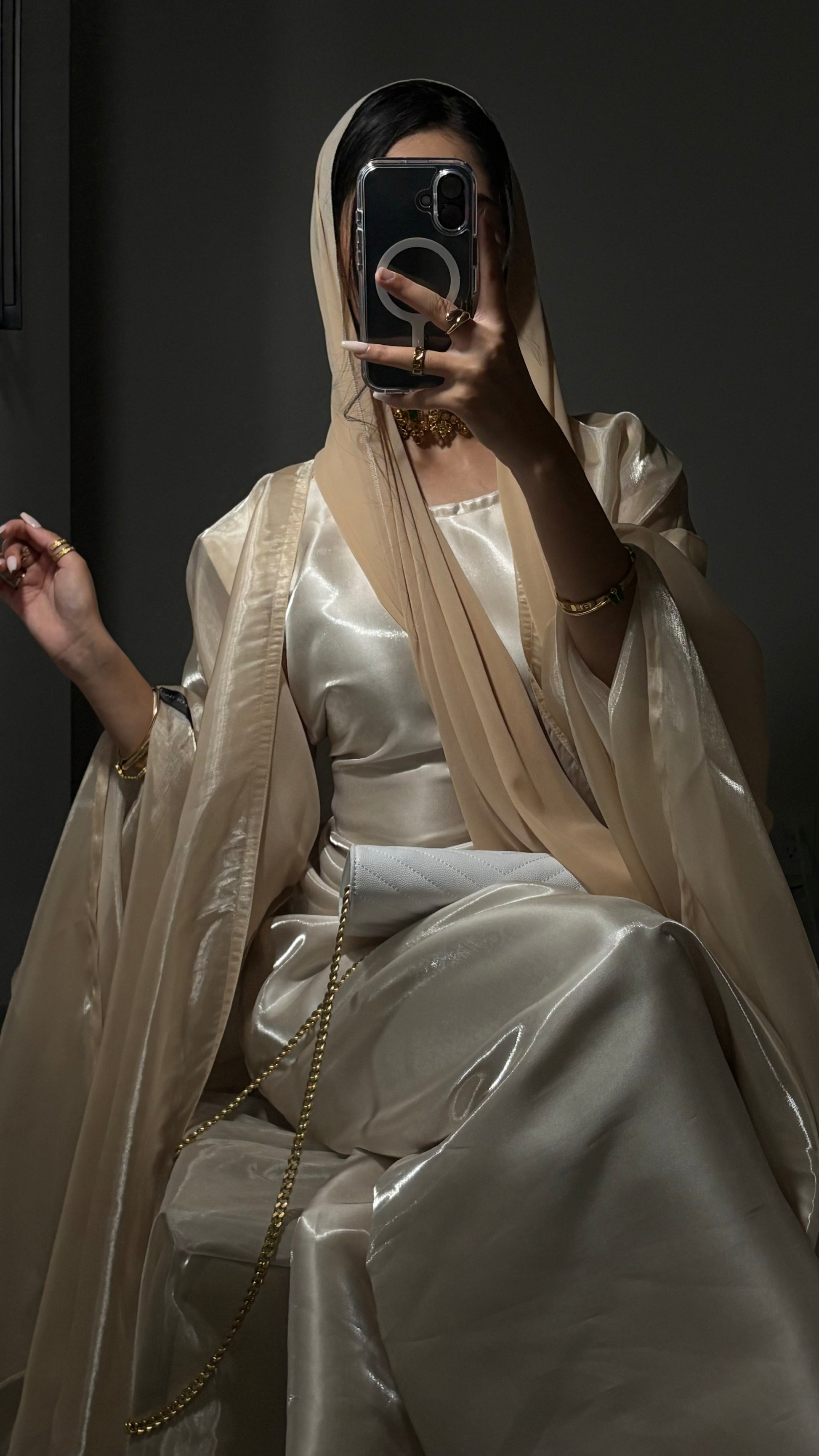 - Outer abaya is see-through (arms will be visible)