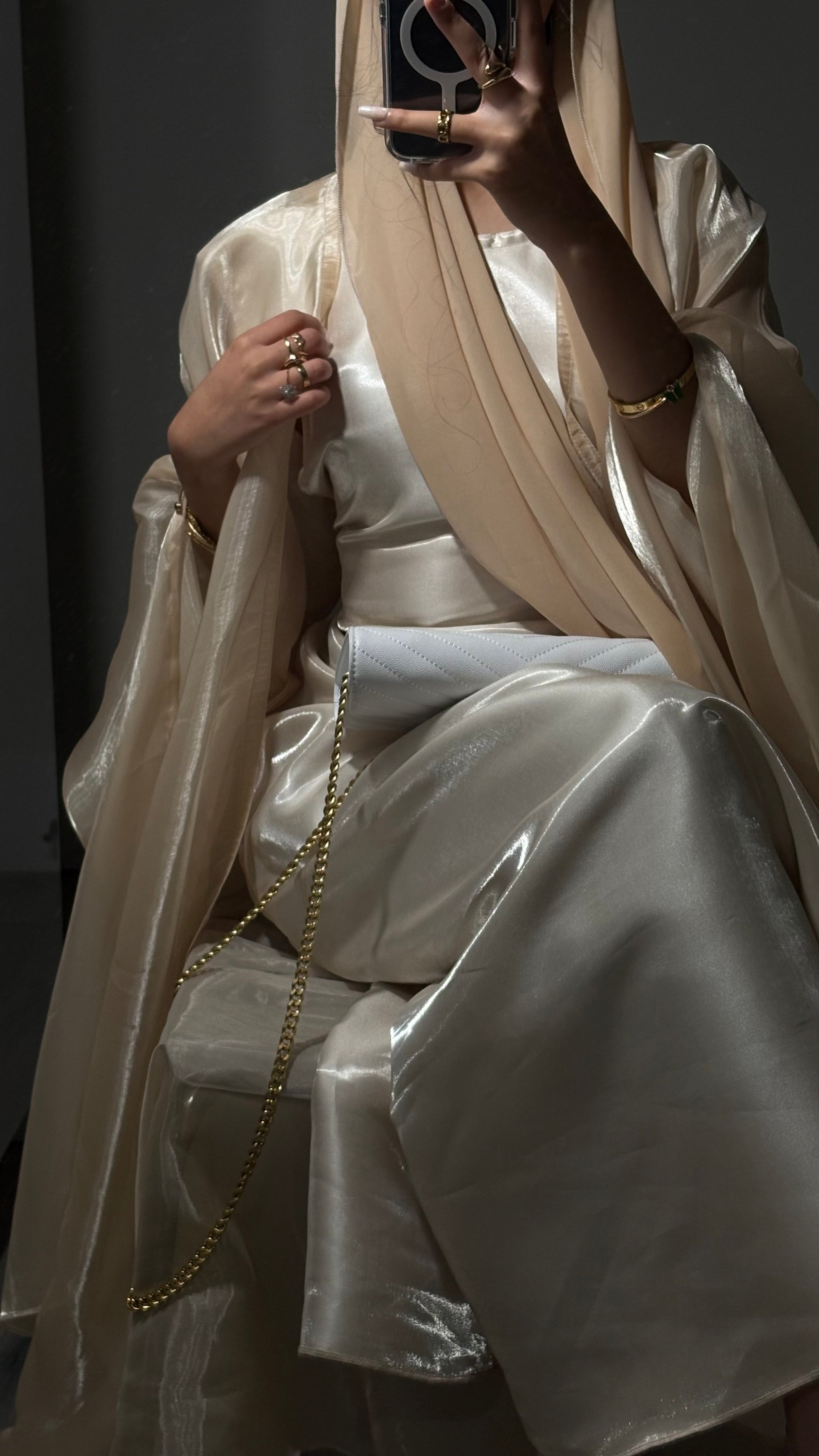 The Luxe Edit Collection brings you our more refined sets of the season. Drape yourself in our three-piece set including an outer abaya, an inner sleeveless dress, and a sheila. Our shimmery Fendi Organza fabric will leave you in awe with every graceful step.