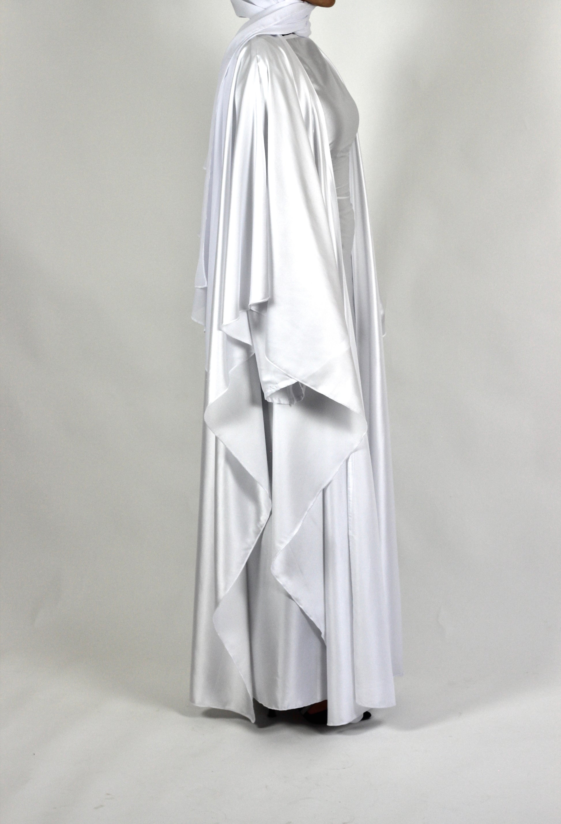 The outer and inner abaya are curated to ensure a loose fit. The inner abaya also has an option to tighten the belt when desired.