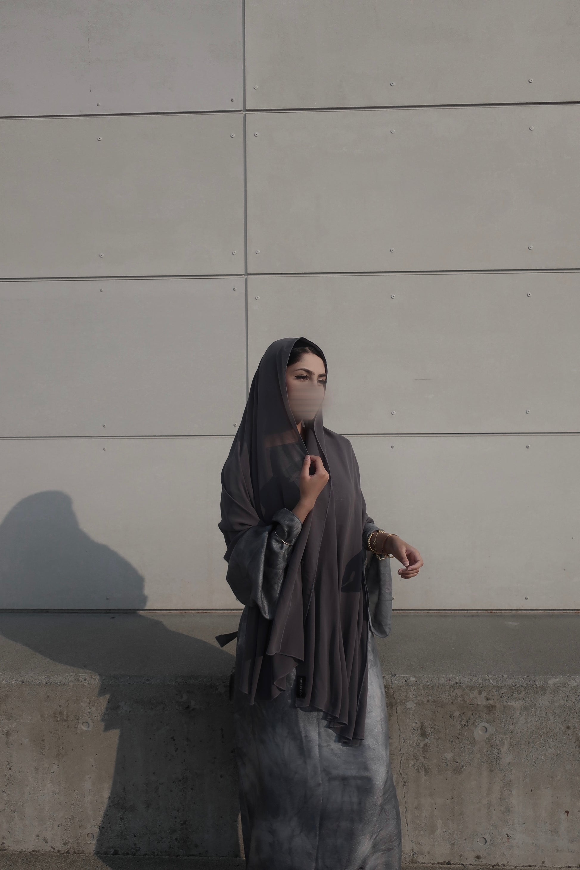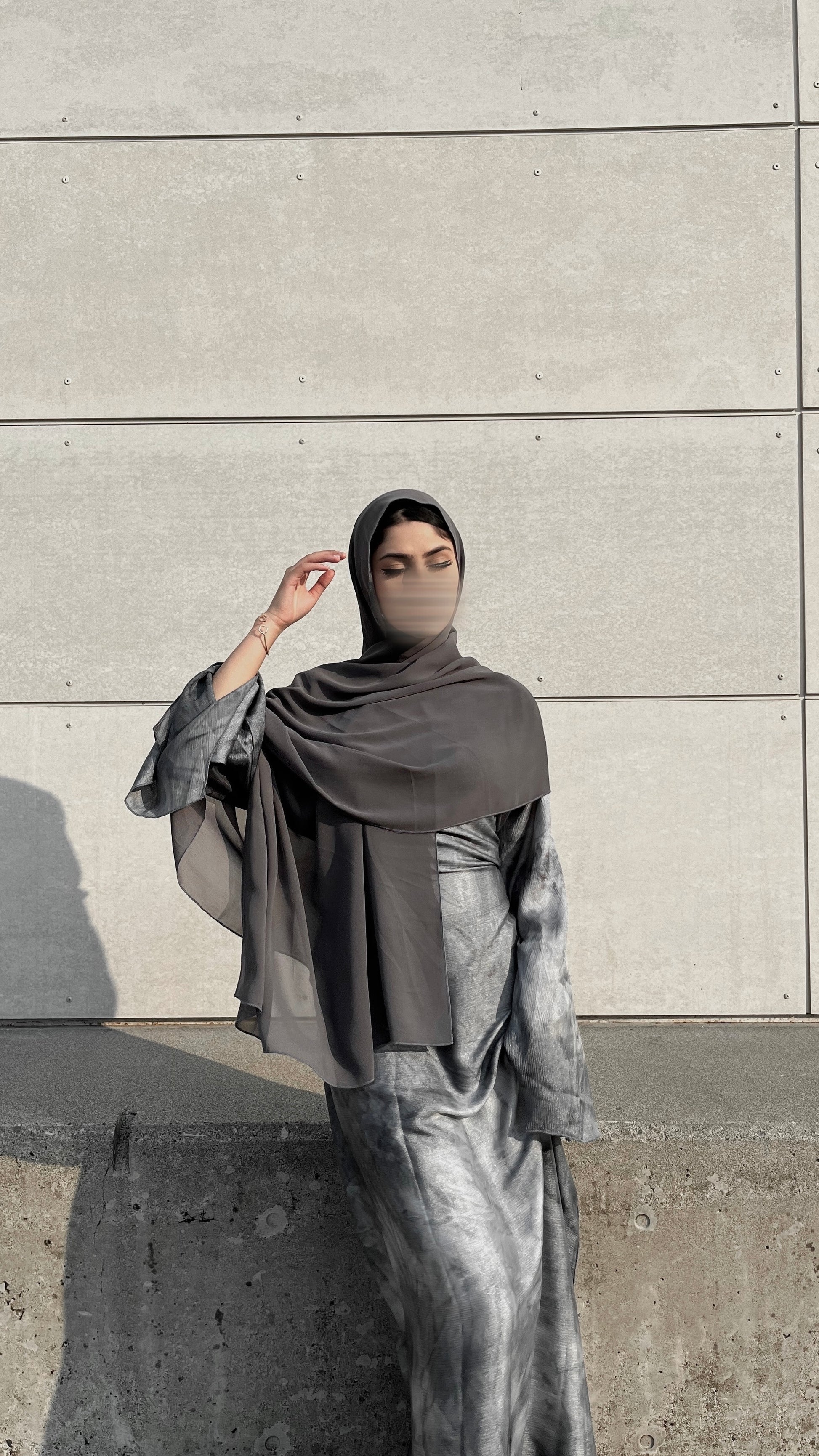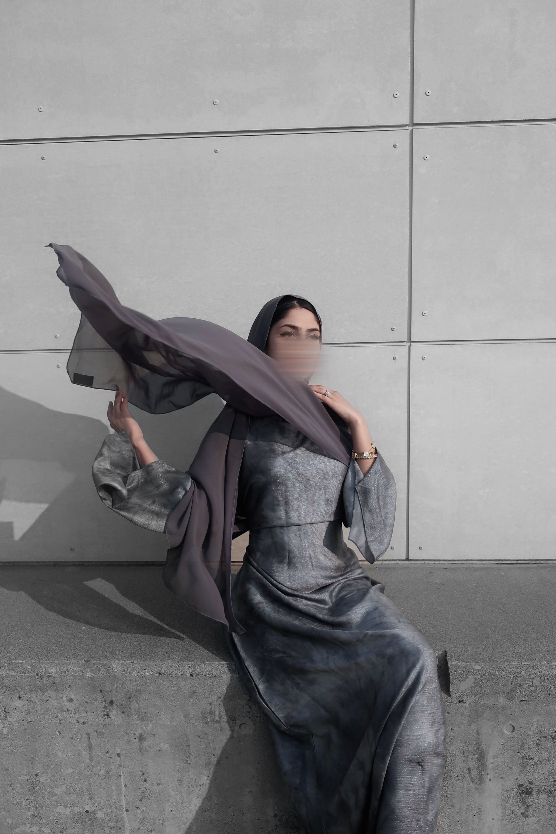 Embrace the essence of summer with the London Slate Set. Combining shades of haze and mist, this ethereal piece captures the spirit of the season. Crafted from premium satin, its fabric offers a luxurious feel against your skin, ensuring an unforgettable experience. The graceful flow of its sleeves complements its alluring silhouette beautifully. Complete your look with an included matching scarf, adding an extra touch of modesty. This special piece is perfect for moody sight-seeing days - or fancy dinner nights. We guarantee you'll shine with dramatic modesty wherever you go. London Slate is waiting for you.