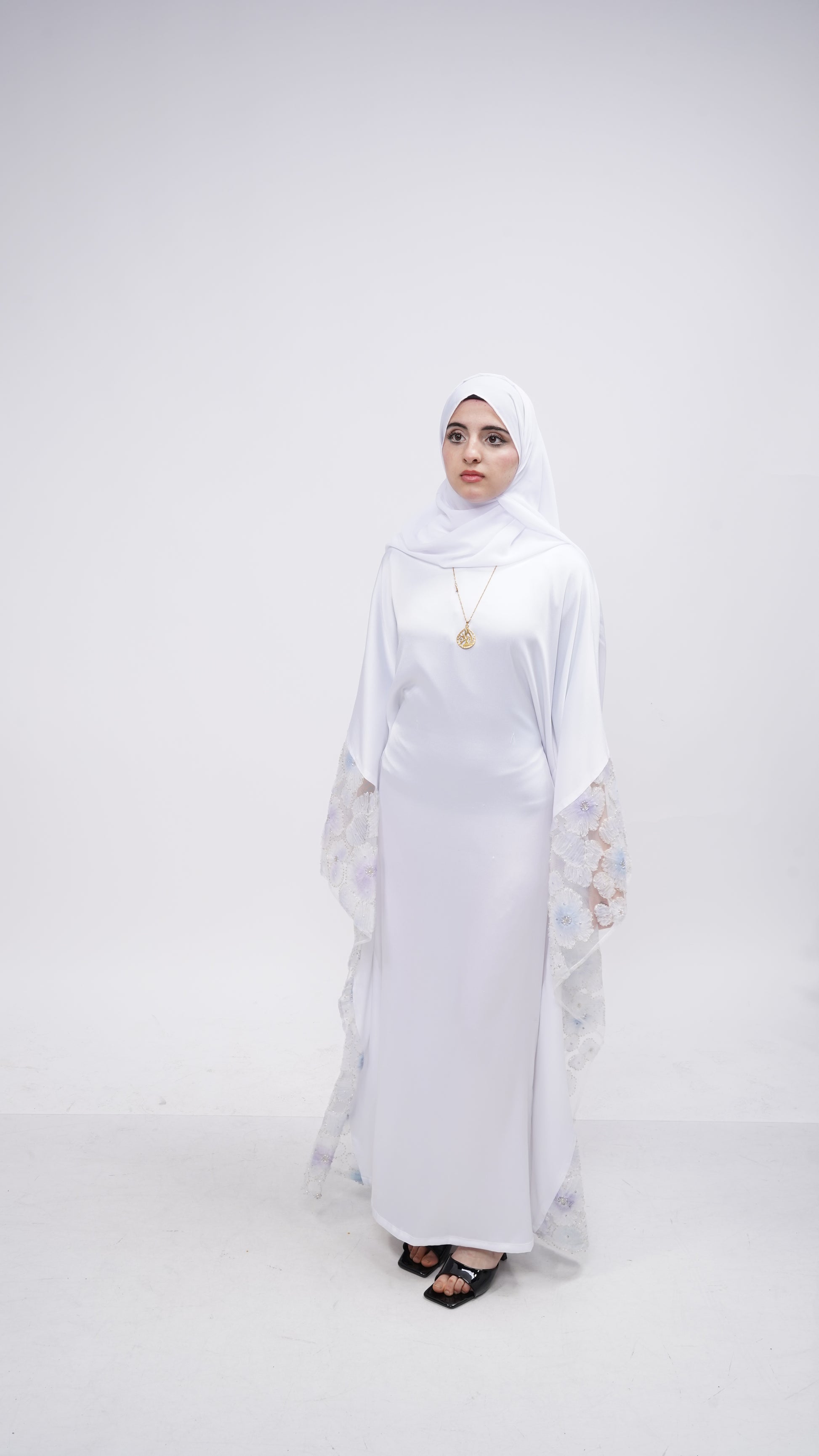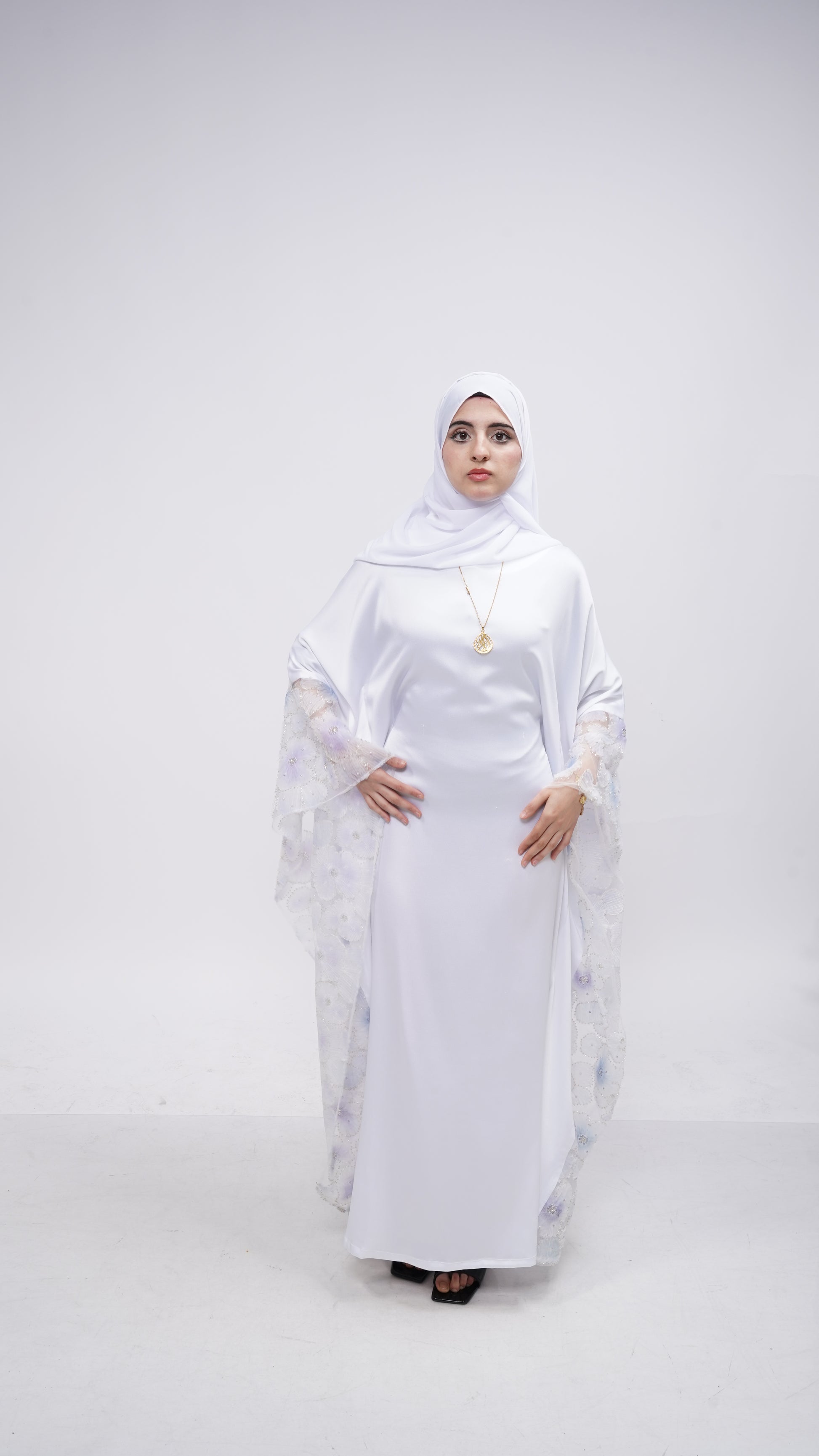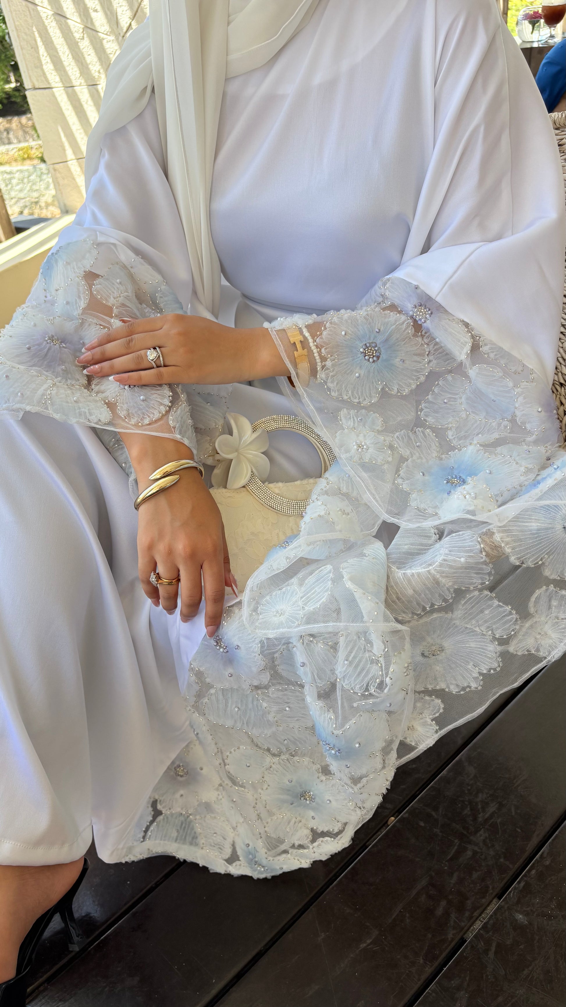 Designed as a butterfly dress, Lunara features airy sleeves washed in light blue and lilac hues, creating a sense of movement and transformation with every step. Her silhouette floats effortlessly, while a hidden internal belt allows the waist to be adjusted for a refined, feminine shape without interrupting the dreamlike flow of the design.