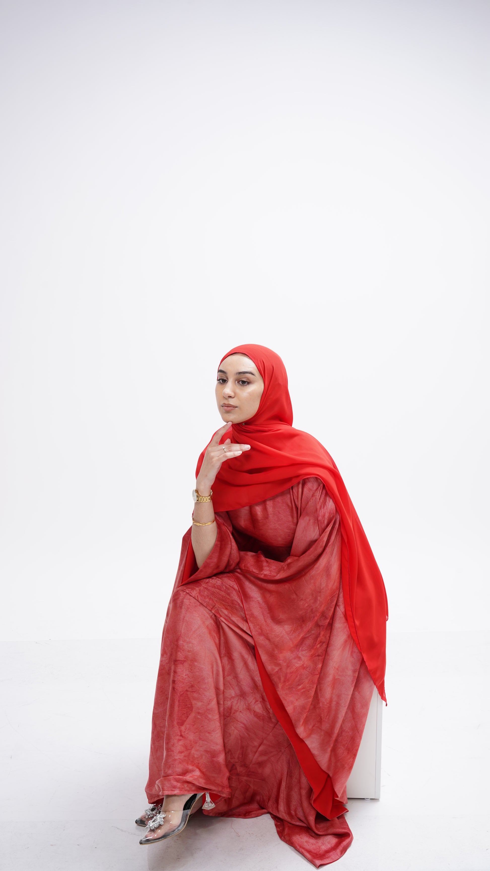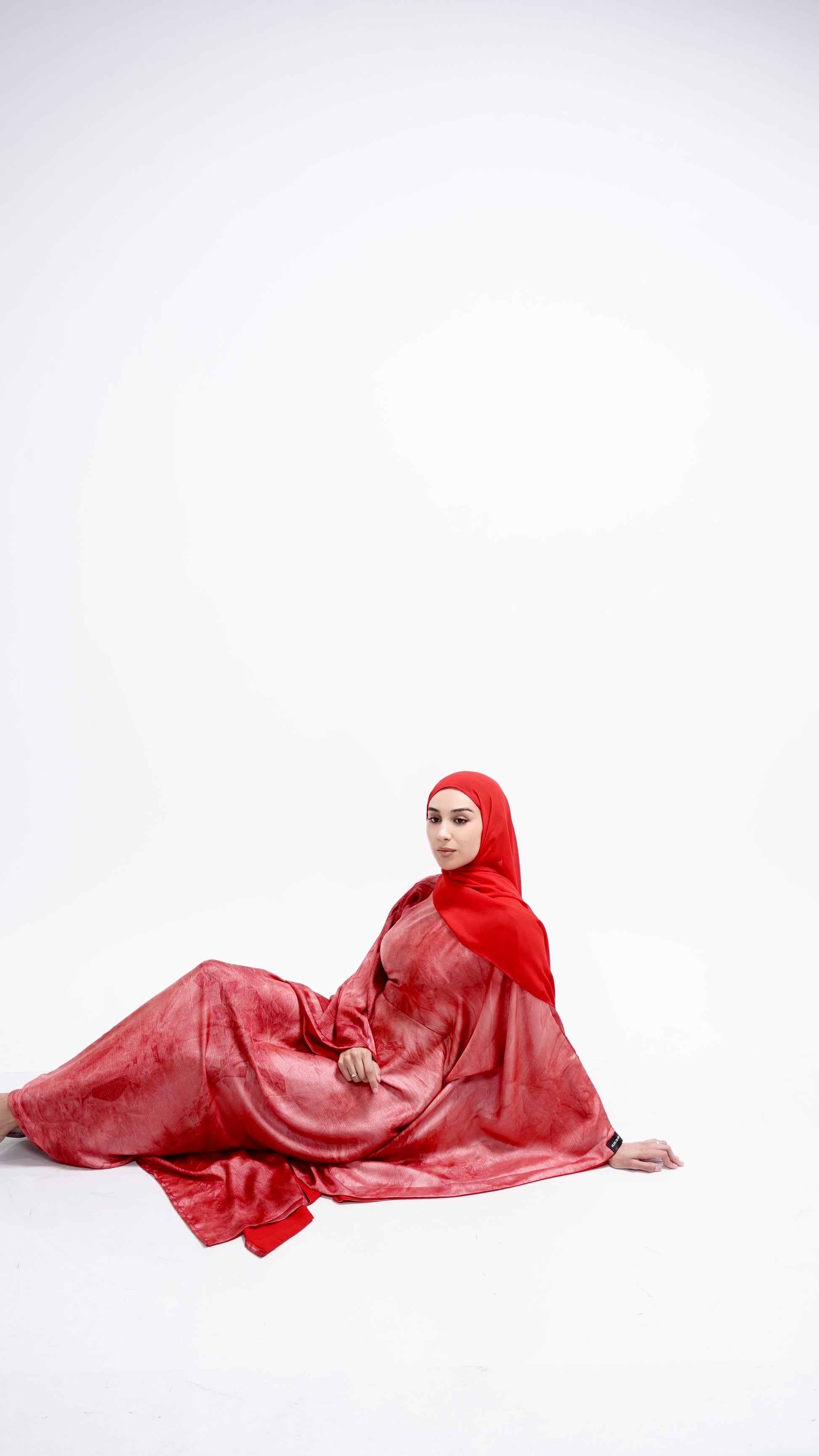 A matching scarf is included for modesty, allowing you to style it in your own way—draped over the shoulders, wrapped as a headscarf, or styled loosely around the neck. Paris Flame is passion in fabric form—perfect for evenings that call for confidence, charm, and unforgettable elegance.
